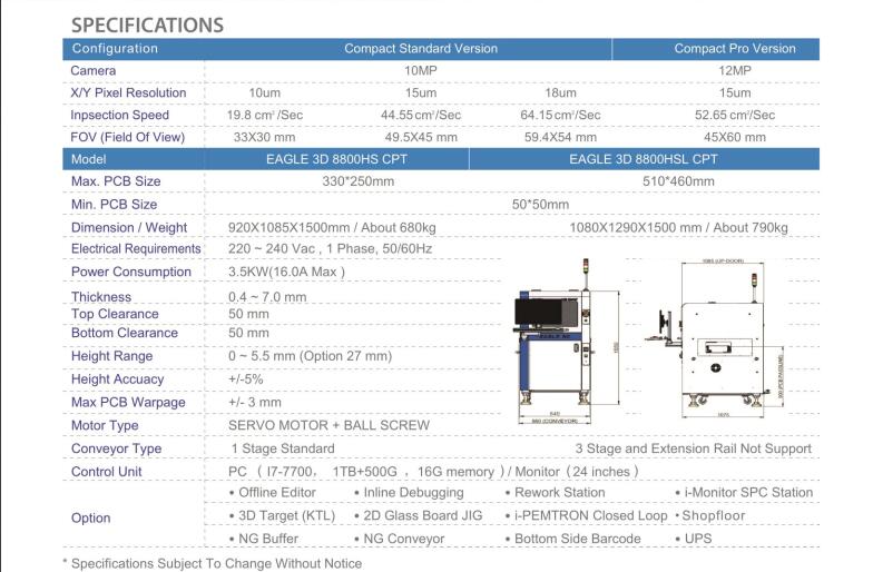 135-1032-6713 立即咨詢3D自動光學檢測儀利用LED燈光(紅、藍、白)打光, 高速CCD相機運動并拍照取像;通過光學反射和摩爾條紋原理,結合相位移動技術和2D+3D 的成像技術,檢測電路板上元器件在SMT過程中的品質問題。 高速度檢測和測量技術 EAGLES 9百萬 8投射 3D AOI系統對PCB進行100%的2D和 3D全檢。結合2D技術,保障完全無陰影光學檢測和低誤報率, 并保持高度靈活性的系統功能。