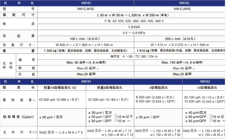 松下VM101貼片機VM102貼片機高速貼片機參數